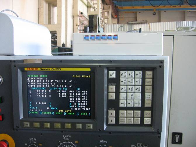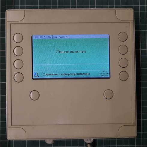 Прообраз системы мониторинга с первой модификацией блока сбора информации о работе оборудования и обоснования простоев, установлен и подключен к стойке чпу Heidenhain430.
